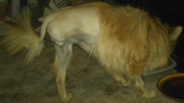 He has other areas stapled and stitched, as those big dogs really hurt him.