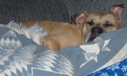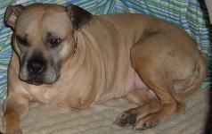 Maggie is about 6 years old and she is a Pit/Shar-Pei mix, according to the vet.