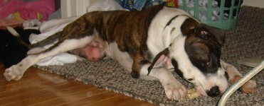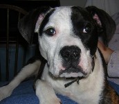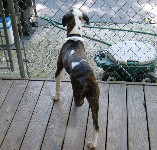 we saw a beautiful Pitbull/American Bulldog mix in the lobby.