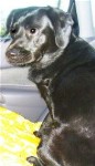 but is comfortable in a dog house, and LOVES riding in the car.