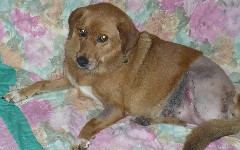 Half of her left hind leg was gone, and she was beaten up pretty badly.