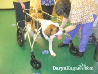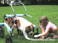 He only uses this special doggie wheelchair when he's in public and visiting school kids.