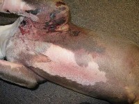 and on his back right leg, the flesh has been pared