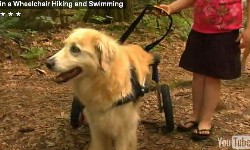 Alaskan Golden Retriever "Denali" goes dog wheelchair hiking