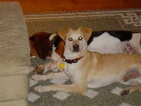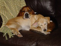 he has a "brother", Merle, 2 1/2 year old basset hound. They are perfect companions.