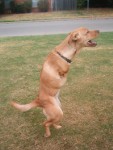 on her two back legs, like a human. She's been a great dog and we forget she's handicapped.