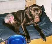 I just found out today, 4-9-05, that he has a tumor in his right hind leg.