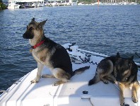 We took him out on our boat this weekend, he did great and had his first romp on the beach