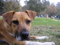 with possibly Shepherd or Ridgeback in her) pup of about 8 or 9 months.